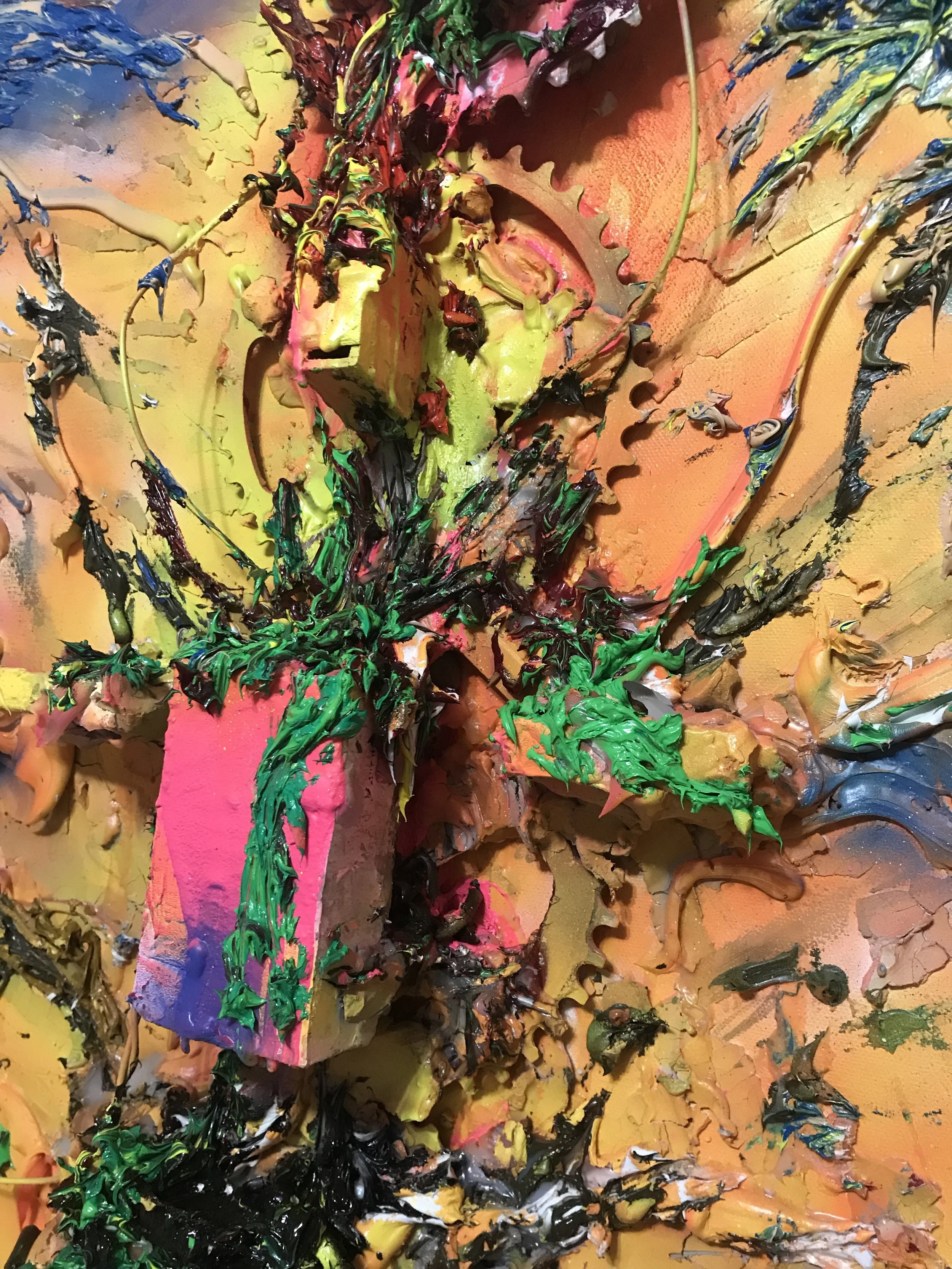 Created between 2015–2017, this work explores dimensional surfaces and the physicality of paint. I built sculptural forms several inches off the canvas, then layered them with thick acrylic and pulled them into motion using bamboo skewers and custom tools. The result is a series of raw, rhythmic surfaces that emphasize gesture, tension, and depth. This early approach laid the groundwork for RISE, a new body of work beginning this December—continuing the investigation with more structure, clarity, and design-driven form.